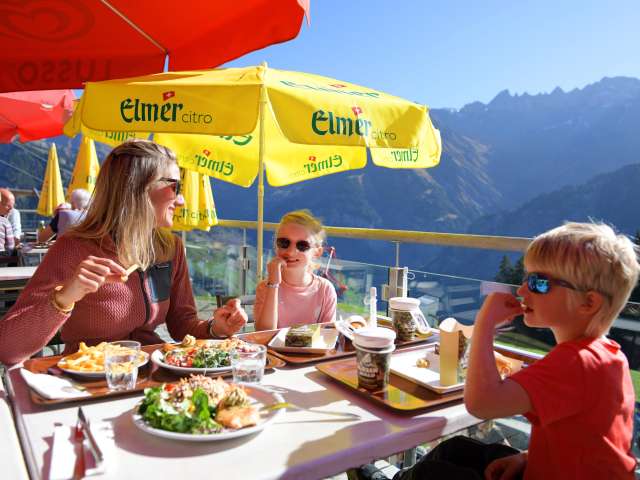 Marktstil bietet eine unkomplizierte Selbstbedienung und kurze Wartezeiten. Auch Pommes Frites und Spaghetti gehören zur Speiseauswahl. Somit ist das Restaurant Ämpächli der ideale Verpflegungsort für Familien, grössere Gruppen und Schulklassen. Lassen Sie sich verwöhnen und geniessen Sie auf der grossen Sonnenterrasse das Panorama und die frische Alpenluft und die Aussicht auf das Martinsloch und die Tschingelhörner.