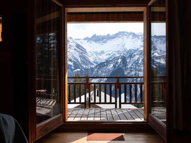 Family & Friends - Loge mit Blick auf das Martinsloch, Erholung vom Alltag in den Glarner Alpen.